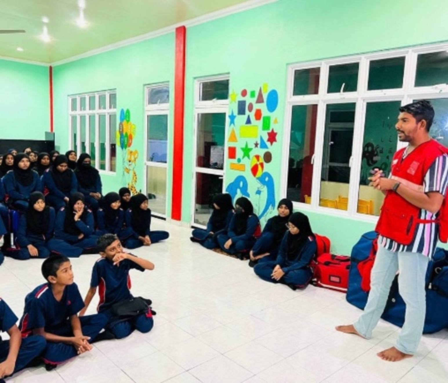 To address this, the Maldivian Red Crescent (MRC) and National Disaster Management Authority (NDMA), through the Enhancing Resilience Planning and Strengthening Community Preparedness (ERCP) Project funded by United States Agency for International Development’s Bureau of Humanitarian Assistance (USAID BHA), are committed to educating and empowering young people on disaster preparedness and climate action across the Maldives. By providing them with the knowledge and skills they need to understand and respond to disasters, we can help them to protect themselves and become agents of change in their families and communities.