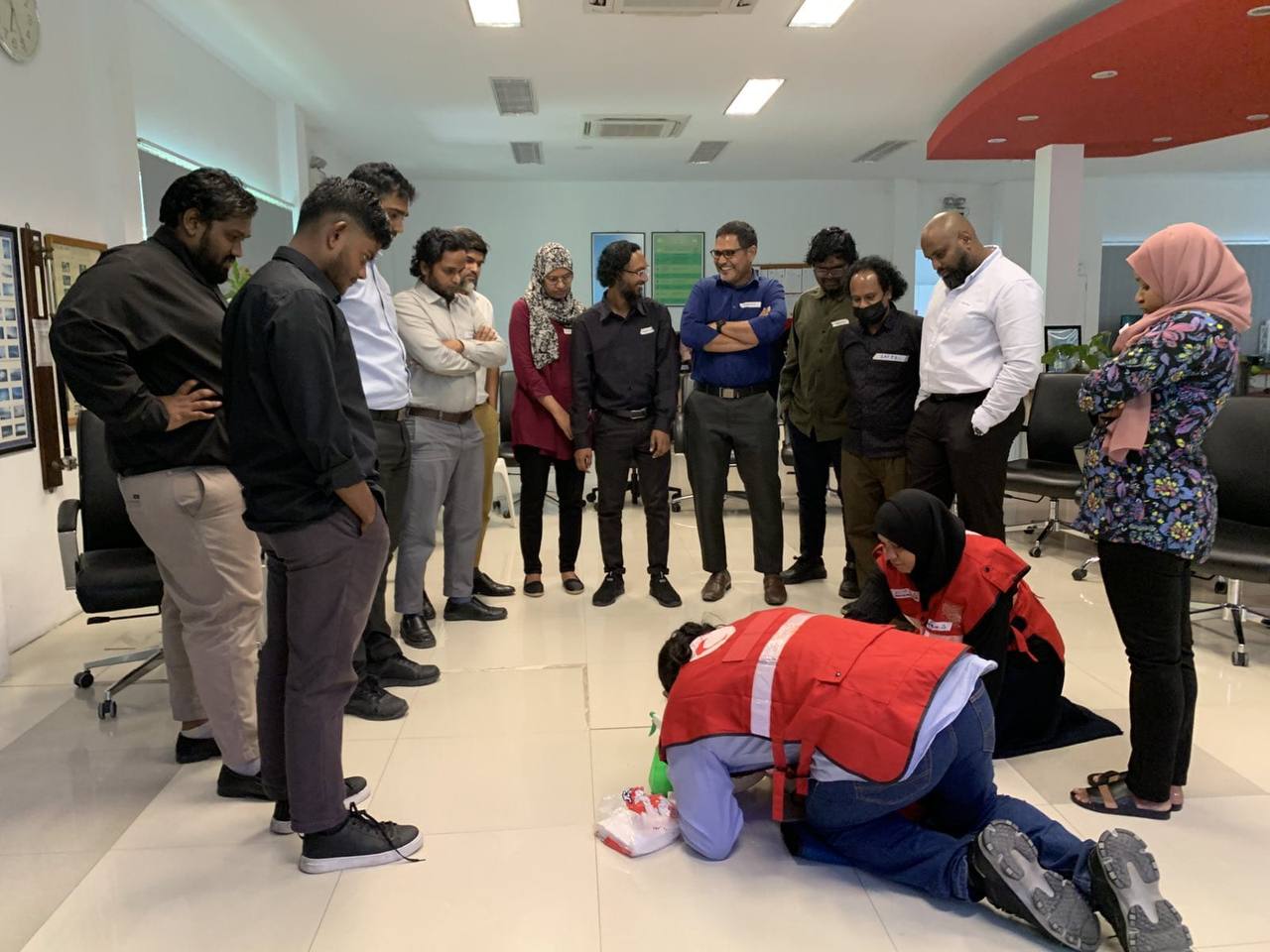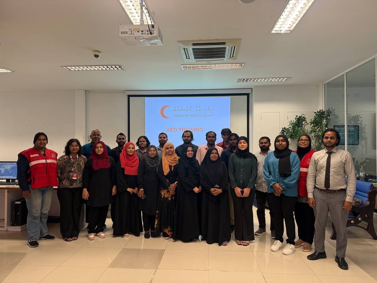 In a joint effort to strengthen emergency preparedness under the Memorandum of Understanding (MoU) between the Maldivian Red Crescent (MRC) and the Maldives Meteorological Service (MMS), MRC conducted a CPR and Automated External Defibrillator (AED) training for the staff of MMS on 1st and 2nd of October 2025.