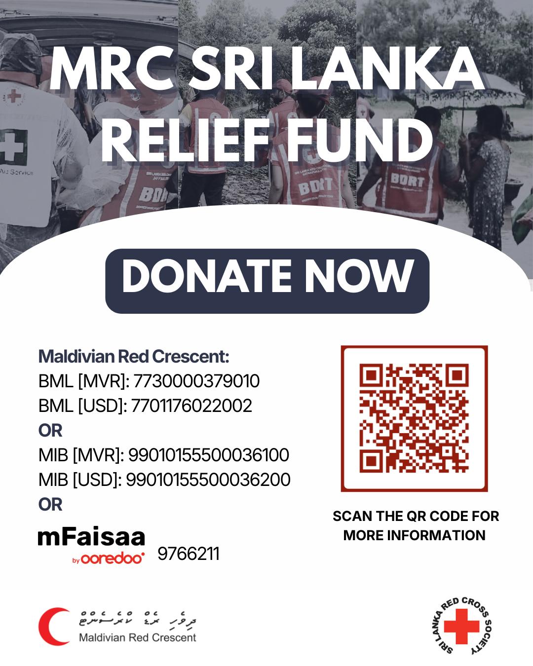 The Maldivian Red Crescent (MRC) has launched the “MRC Sri Lanka Relief Fund” to provide immediate relief and support the response and recovery efforts following the severe humanitarian crisis caused by Cyclone Ditwah. The fund will be open until 10th January 2026.